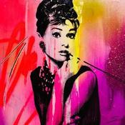This unique and original contemporary artwork "Audrey’s at Tiffanys" on the subject of Pop icons has been created by the contemporary artist Mestres Sergi.