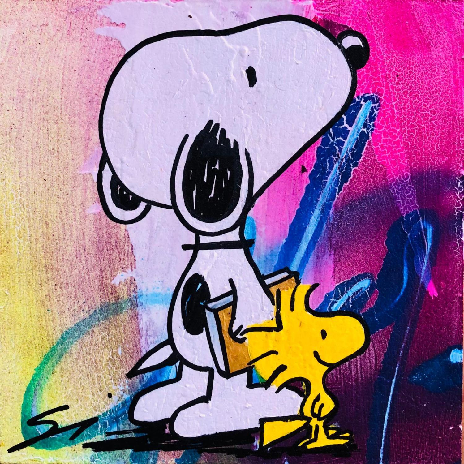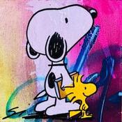 This unique and original contemporary artwork "The gold book of snoopy" on the subject of Pop icons has been created by the contemporary artist Mestres Sergi.