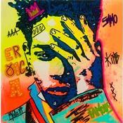 This unique and original contemporary artwork "Famous" on the subject of Pop icons has been created by the contemporary artist Molla Nathalie .