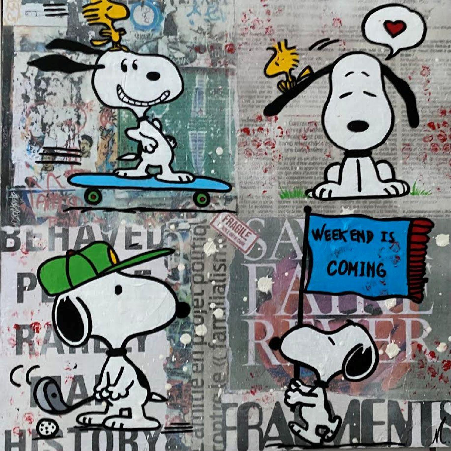 This unique and original contemporary artwork "Snoopy en we" on the subject of Pop icons has been created by the contemporary artist Marie G. .