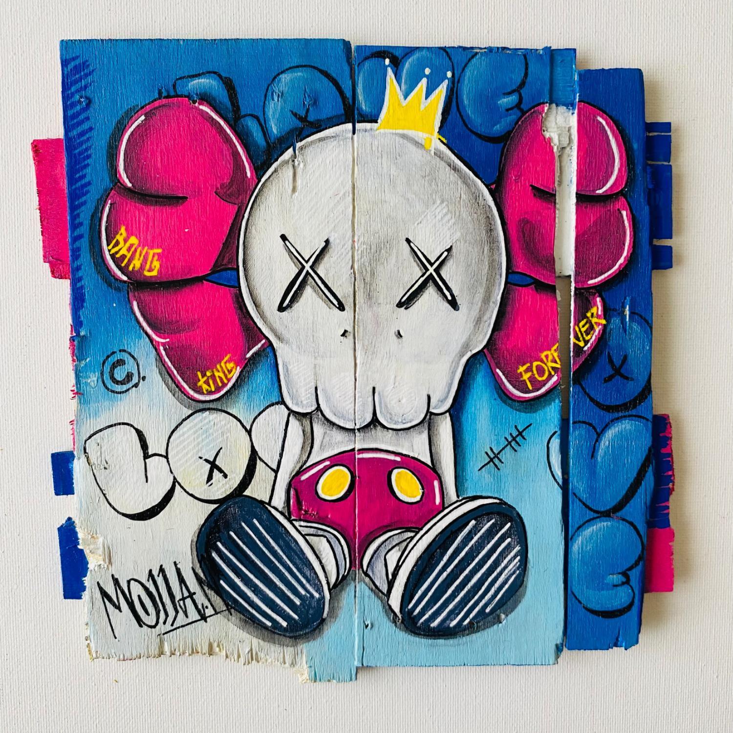The artist used Wood, Acrylic, Posca media on Wood to create this Pop-art, Small size painting.