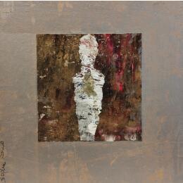 The artist used Acrylic, Gluing, Sand media on Canvas board to create this Raw art, Small size painting.
