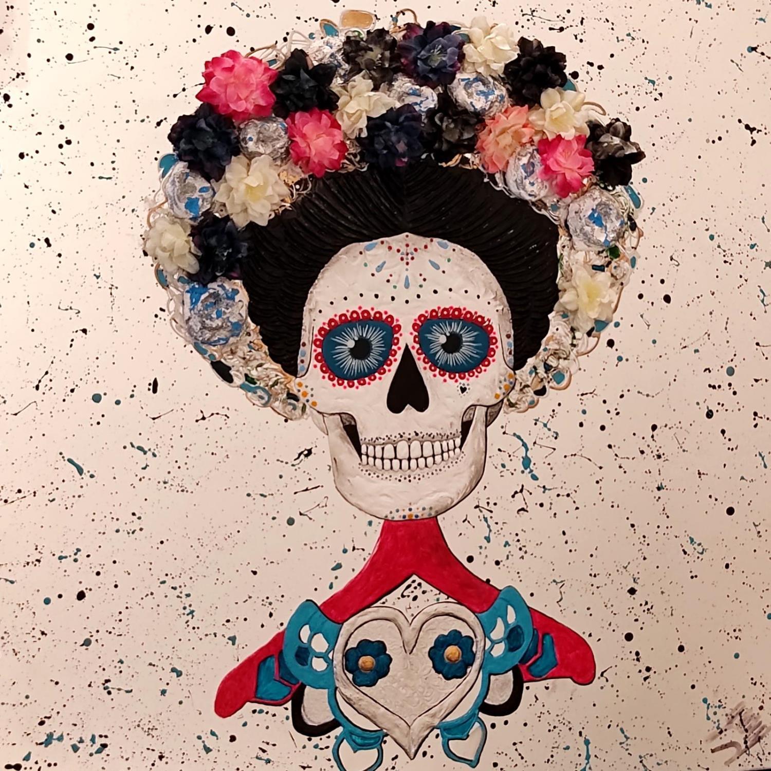 This unique and original contemporary artwork "Flores de frida" on the subject of Portrait has been created by the contemporary artist Geiry.