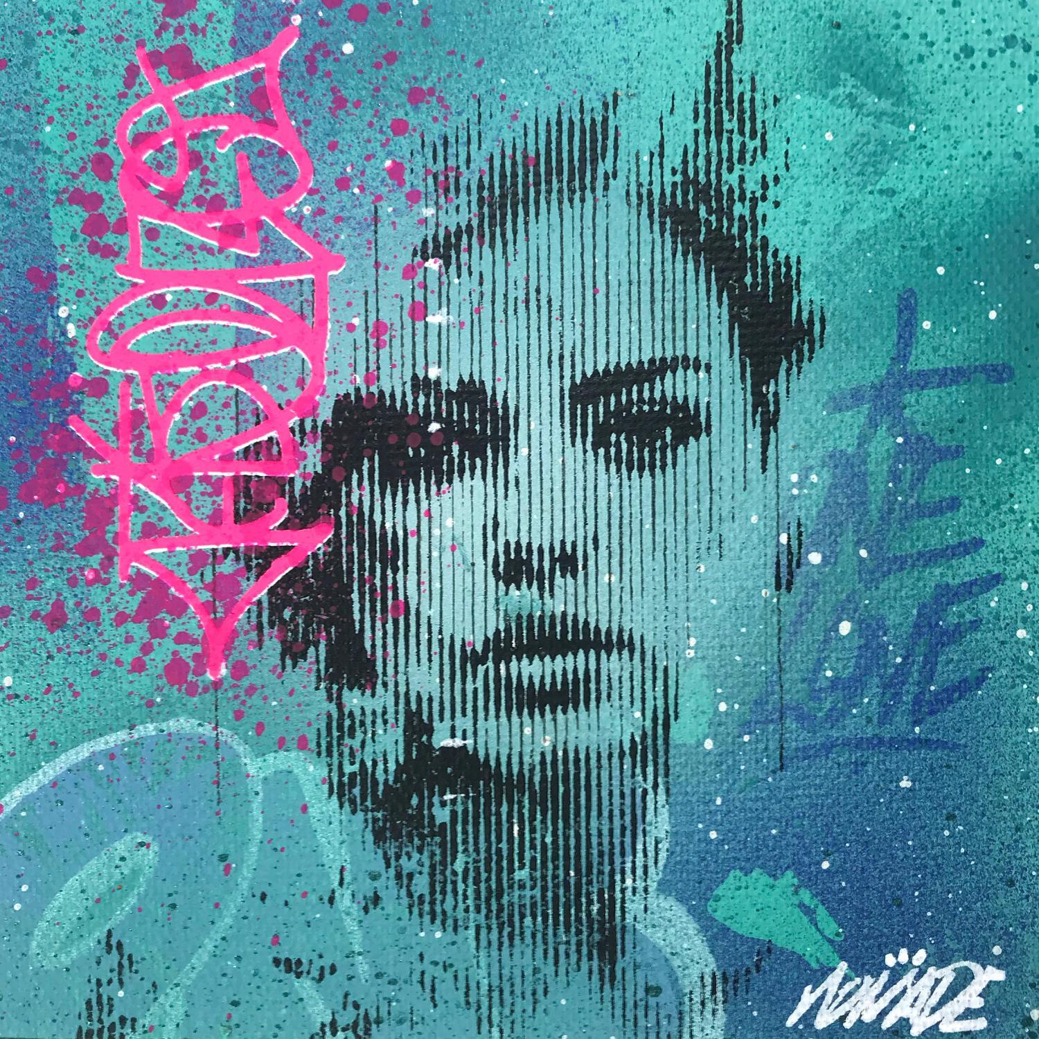 The artist used Acrylic and Graffiti techniques to create this small-format Street Art-style painting on canvas.