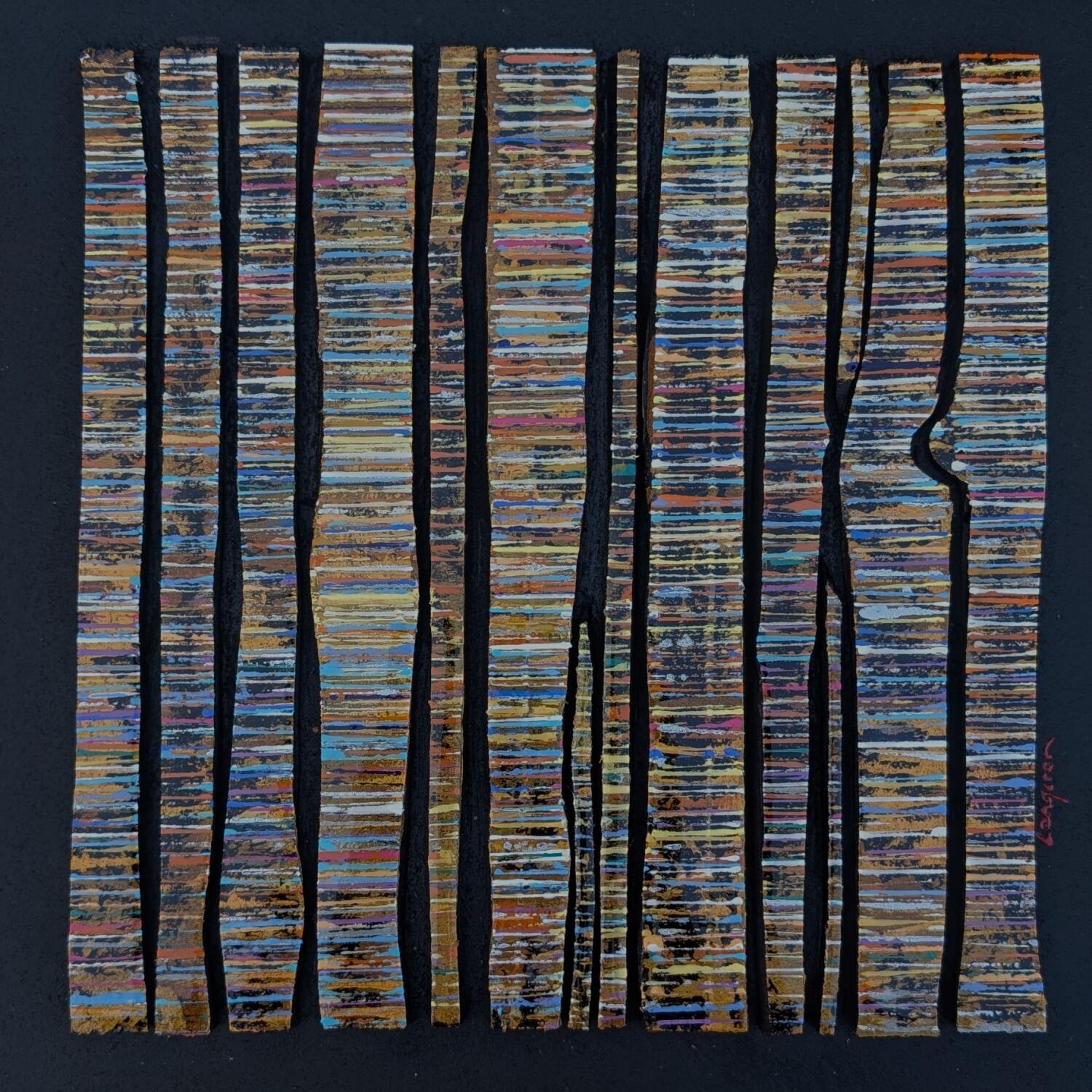 This unique and original contemporary artwork "Bc13 fine or argent multi jaune bleu" has been created by the contemporary artist Langeron Luc.