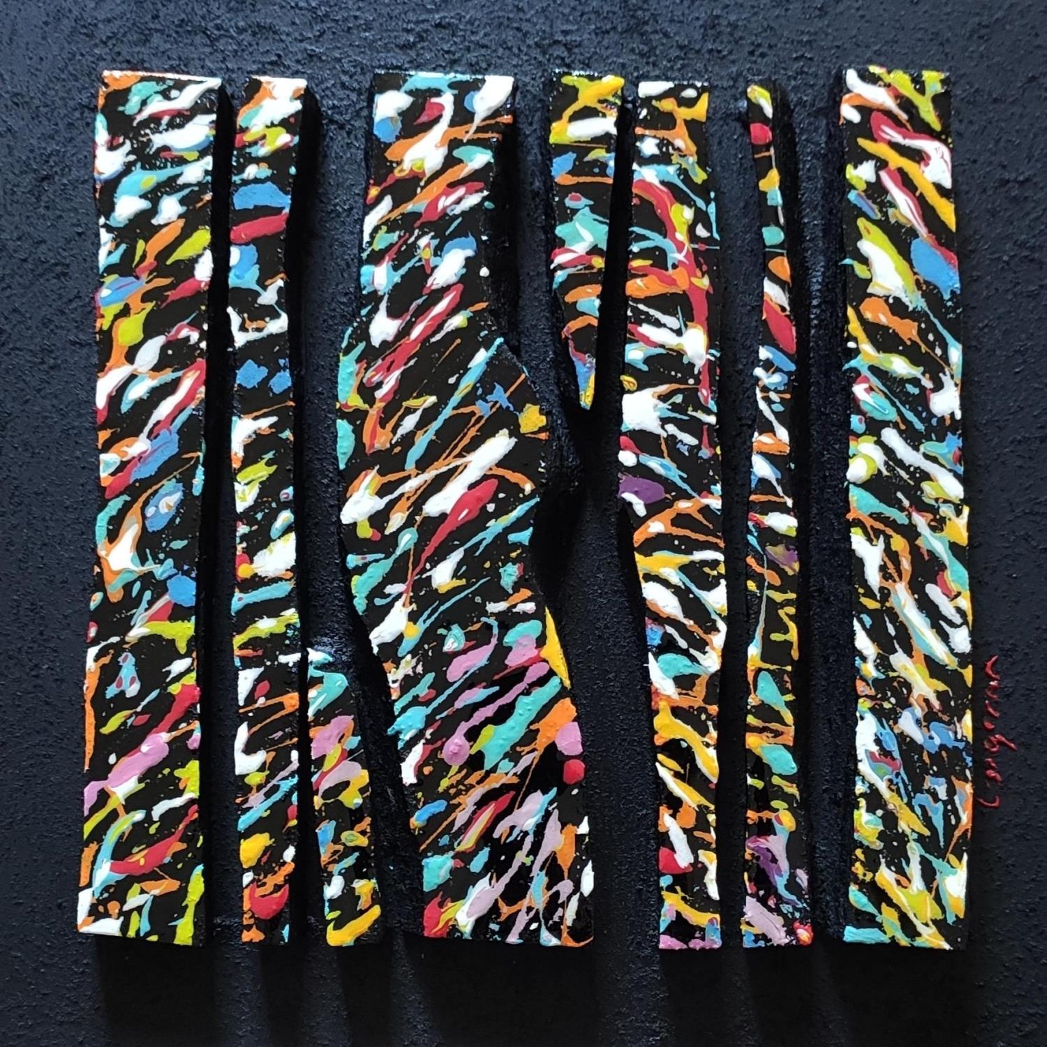 This unique and original contemporary artwork "Bc 8 drop multi rouge vert" has been created by the contemporary artist Langeron Luc.