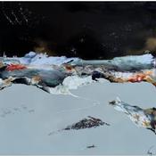 The artist used Acrylic, Ink media on Other to create this Abstract, Large size painting.