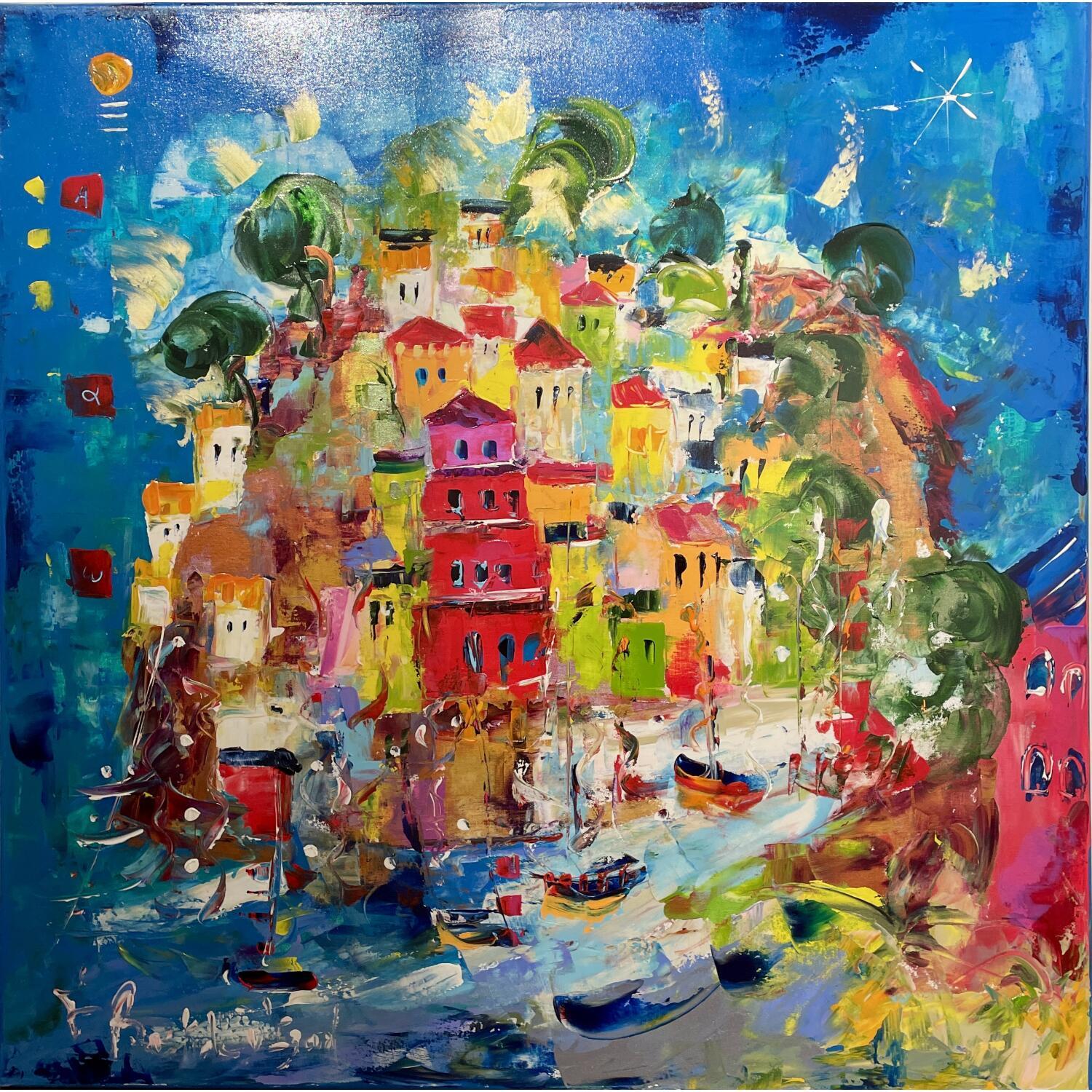 This unique and original contemporary artwork "Bleu passion (côte amalfitaine)" has been created by the contemporary artist Bastide d´Izard Armelle.