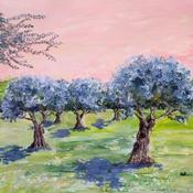 This unique and original contemporary artwork "Lumières d'oliviers." on the subject of Landscapes has been created by the contemporary artist Rey Ewa.