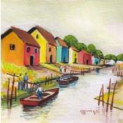 This unique and original contemporary artwork "AP73 LE CANAL" on the subjects of Landscapes, Marine, Nature has been created by the contemporary artist Burgi Roger.