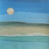 The artist used acrylic paint, recycled pantyhose and thread to create this minimalist landscape that sketches low vegetation and distant wooded reliefs.