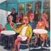 This unique and original contemporary artwork "Le café bleu" on the subject of Life style has been created by the contemporary artist Doucedame Christine.