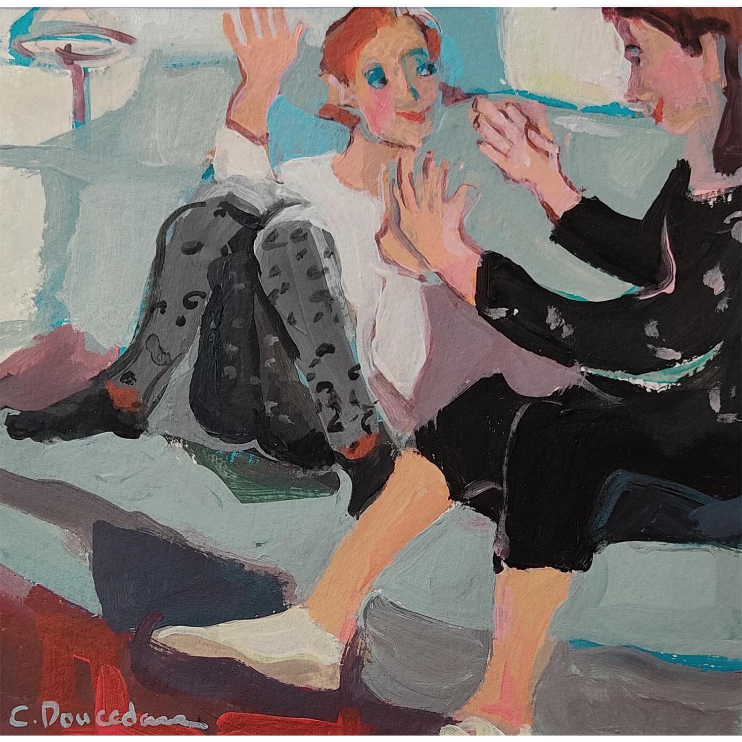 Painting Le jeu de main by Doucedame Christine | Painting Figurative Life style Acrylic