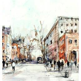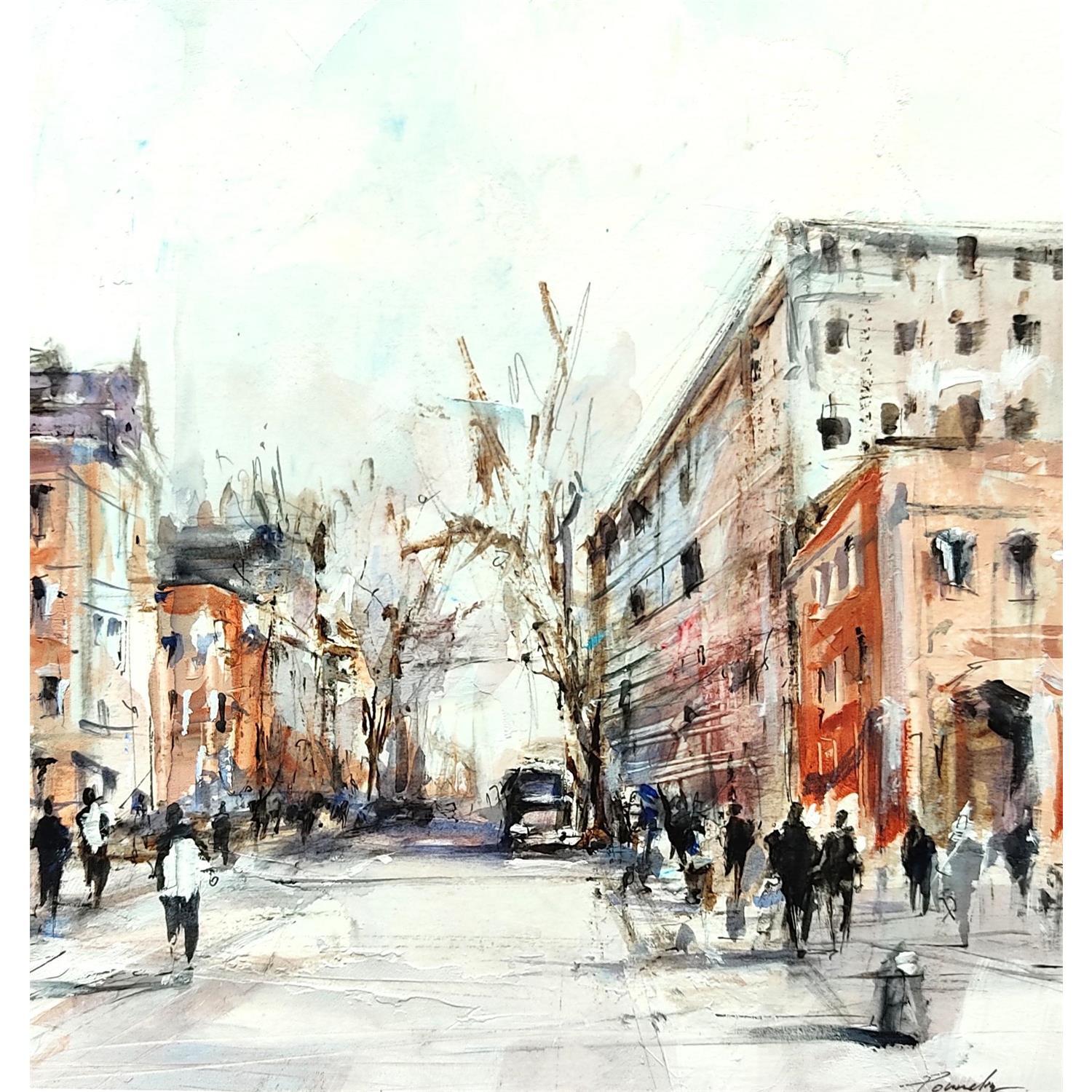 This unique and original contemporary artwork "Toulouse centre ville" on the subjects of Life style, Urban has been created by the contemporary artist Poumelin Richard.