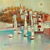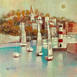 This unique and original contemporary artwork "AQ180 PORT DE SARDAIGNE" on the subjects of Marine, Landscapes, Urban has been created by the contemporary artist Burgi Roger.