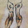 The artist used ink, watercolor, and pastel to create this small-format figurative painting on paper, exploring minimalist and nude themes.