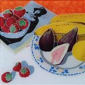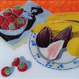 This unique and original contemporary artwork "Oscar et Andy appréciaient les fruits frais" on the subject of Still-life has been created by the contemporary artist Auriol Philippe.