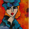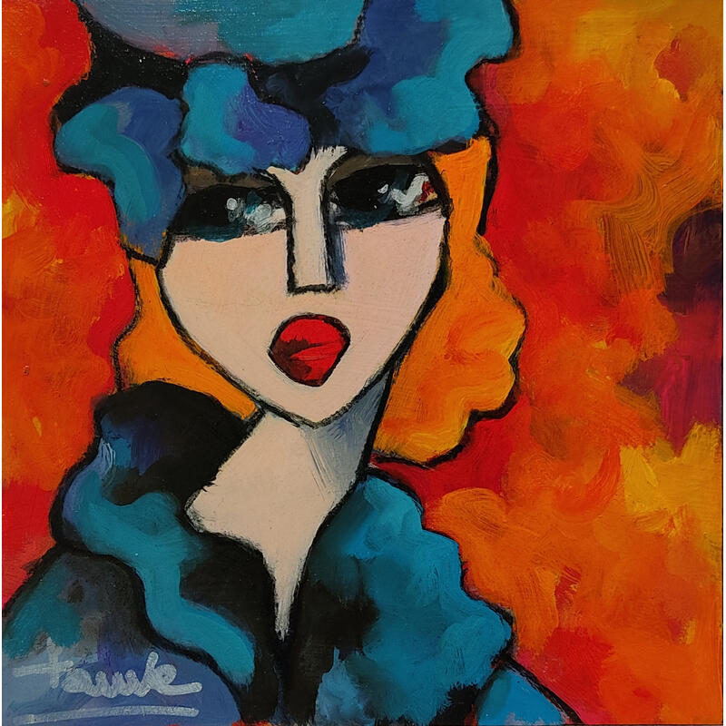 This unique and original contemporary artwork "Rousse au chapeau bleu" on the subject of Life style has been created by the contemporary artist Fauve.
