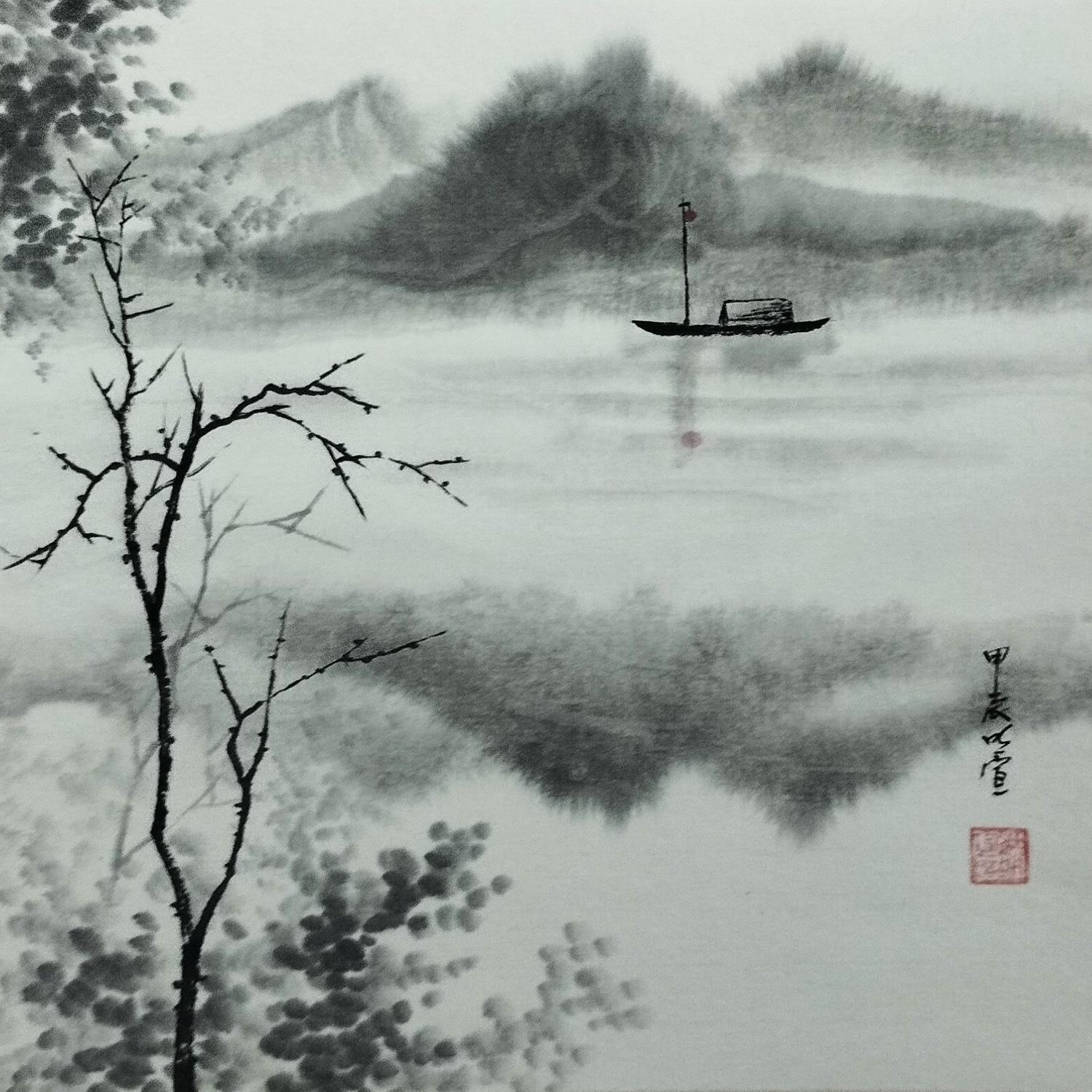 Painting Boat by Du Mingxuan | Painting Figurative Landscapes Nature Watercolor Ink