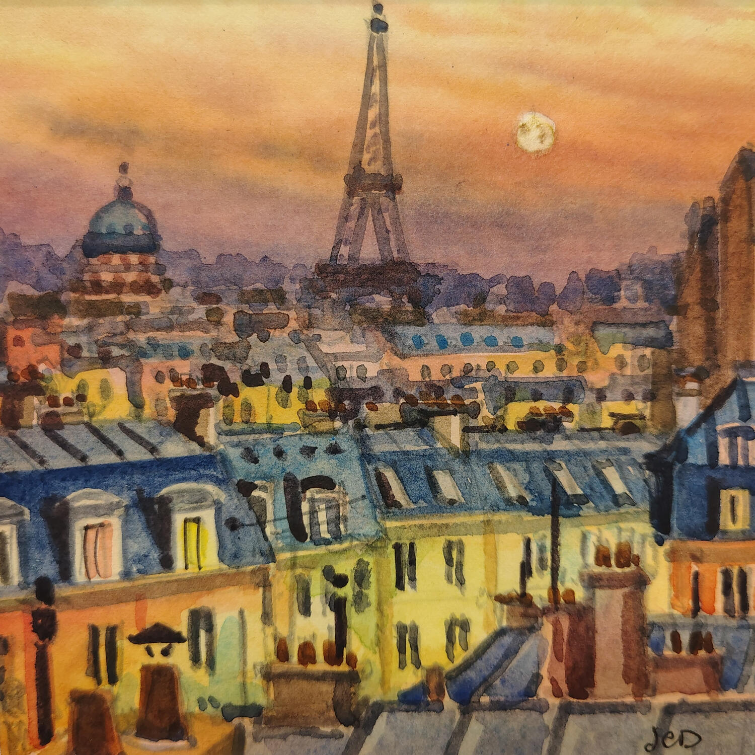 This unique and original contemporary artwork "Le soir sur les toits" on the subject of Urban has been created by the contemporary artist Decoudun Jean charles.