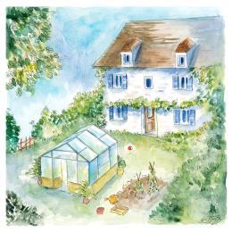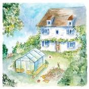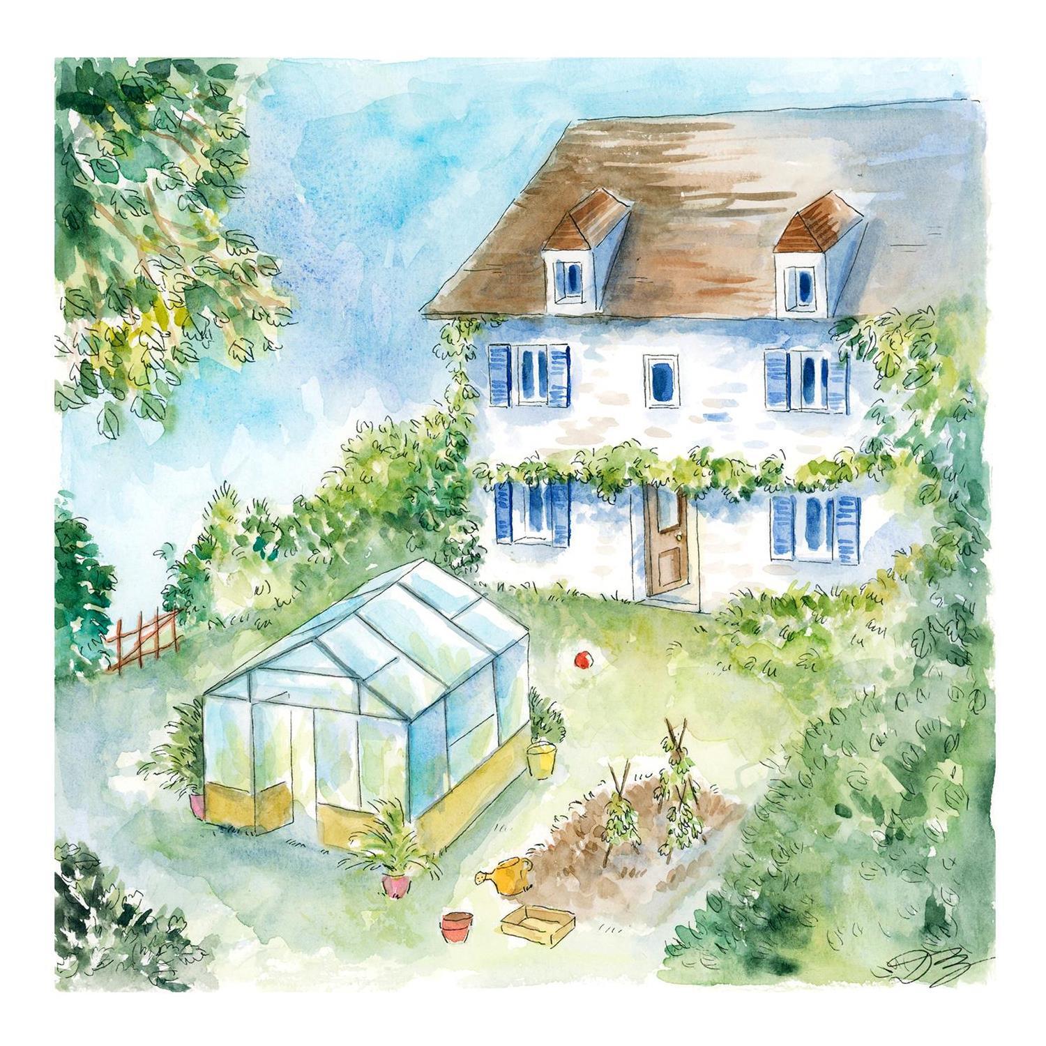 Painting Potager campagne by Balme Delphine | Painting Naive art Landscapes Life style Watercolor