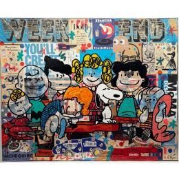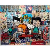 The artist used Acrylic, Gluing, Graffiti media on Canvas to create this Pop-art, Large size painting.