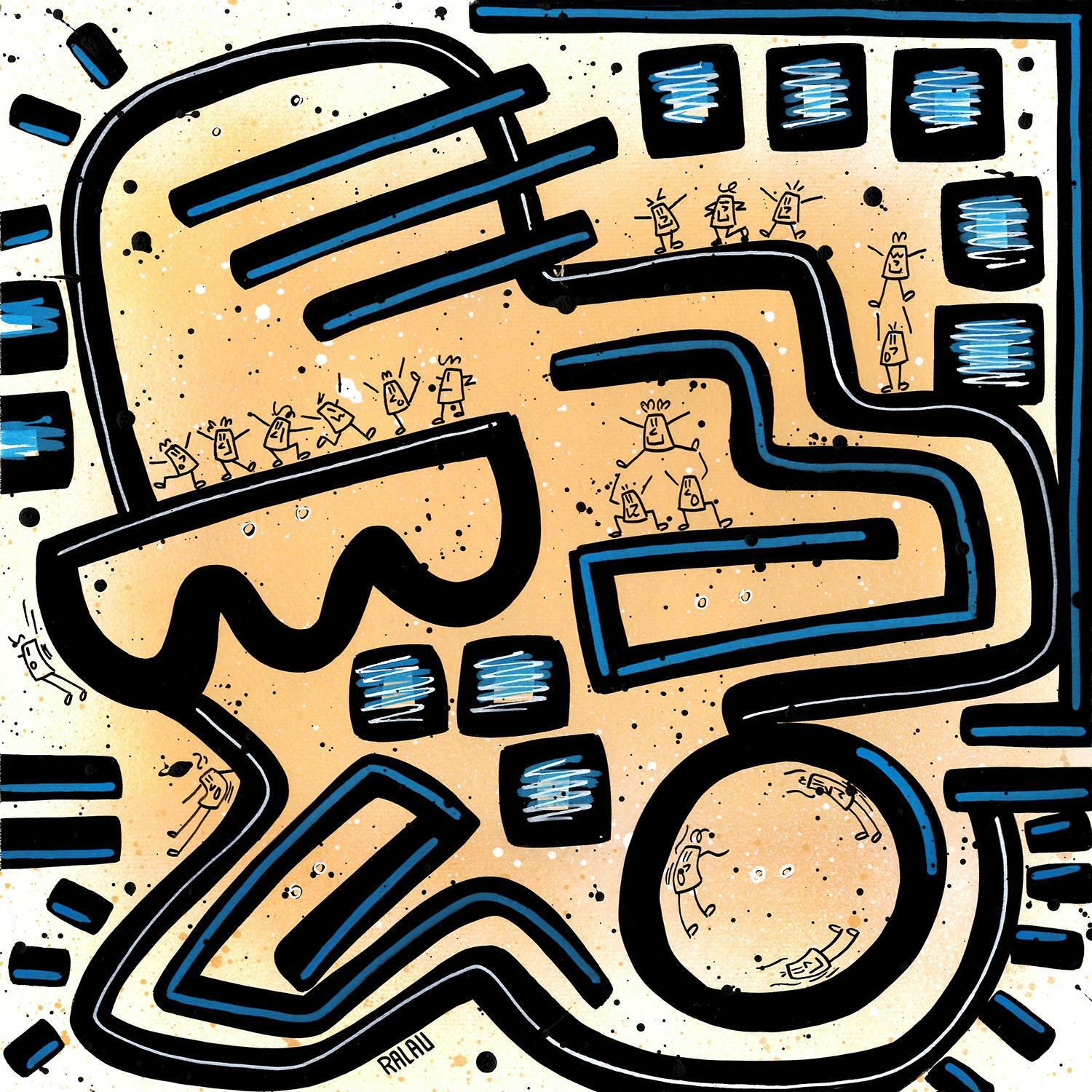 This unique and original contemporary artwork "Aquarium" on the subjects of Marine, Life style has been created by the contemporary artist Ralau.