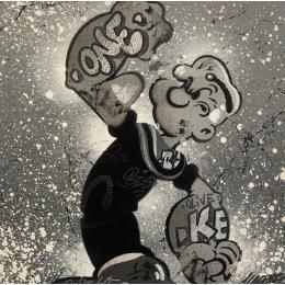 This unique and original contemporary artwork "Popeye gris" on the subject of Pop icons has been created by the contemporary artist Lemoine Mael.