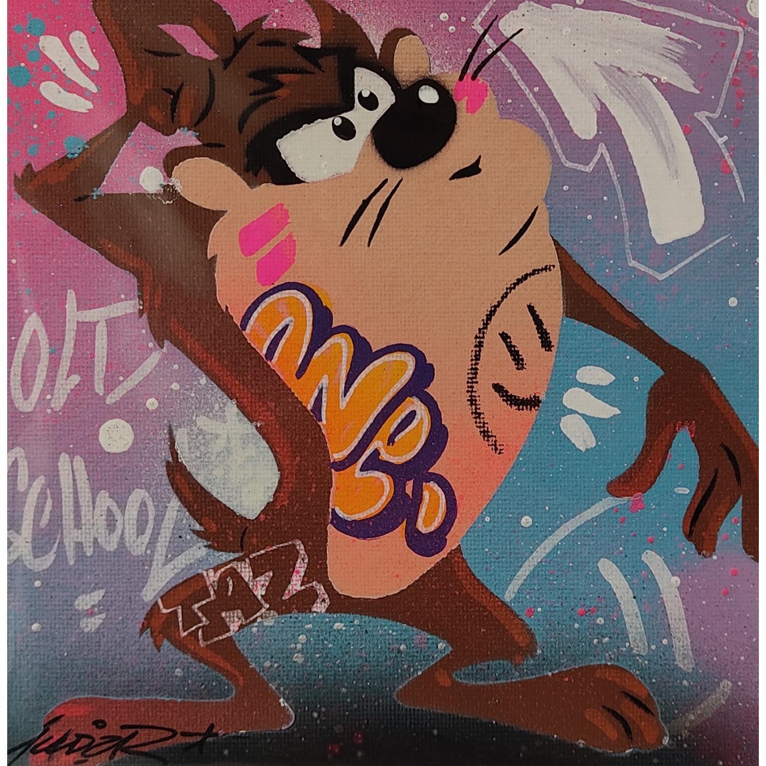 This unique and original contemporary artwork "Taz" on the subject of Pop icons has been created by the contemporary artist Lemoine Mael.