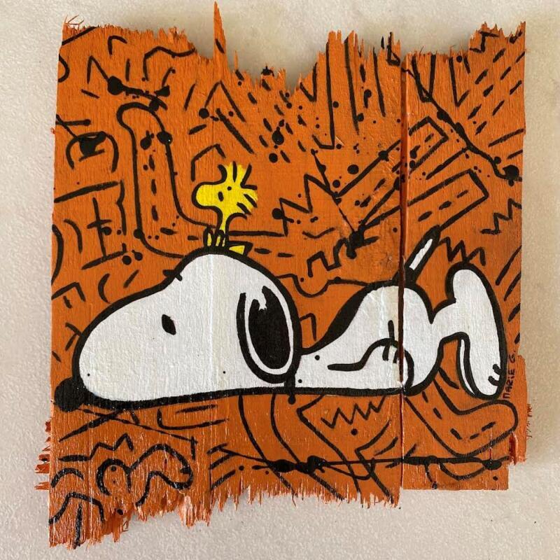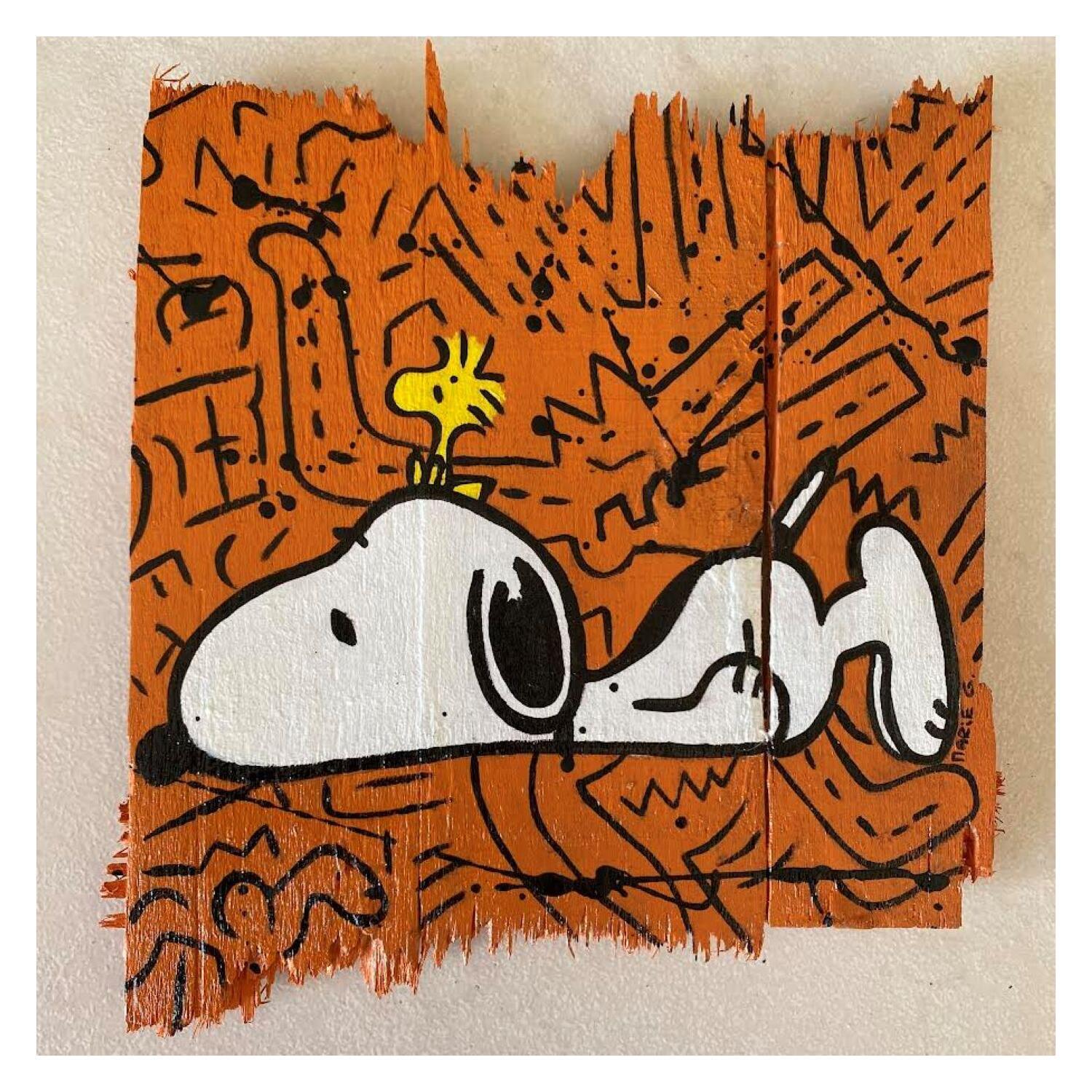 Painting Snoopy et Woodstock by Marie G.  | Painting Pop-art Pop icons Wood Acrylic Gluing