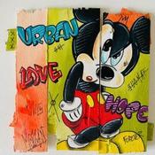The artist used Acrylic, Wood, Posca media on Wood to create this Pop-art, Small size painting.