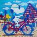The artist used mixed medium to create this Pop-art, Small size painting.