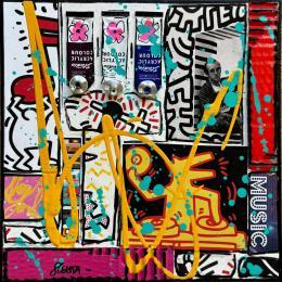 This unique and original contemporary artwork "Music by K.Haring" on the subject of Pop icons has been created by the contemporary artist Costa Sophie.