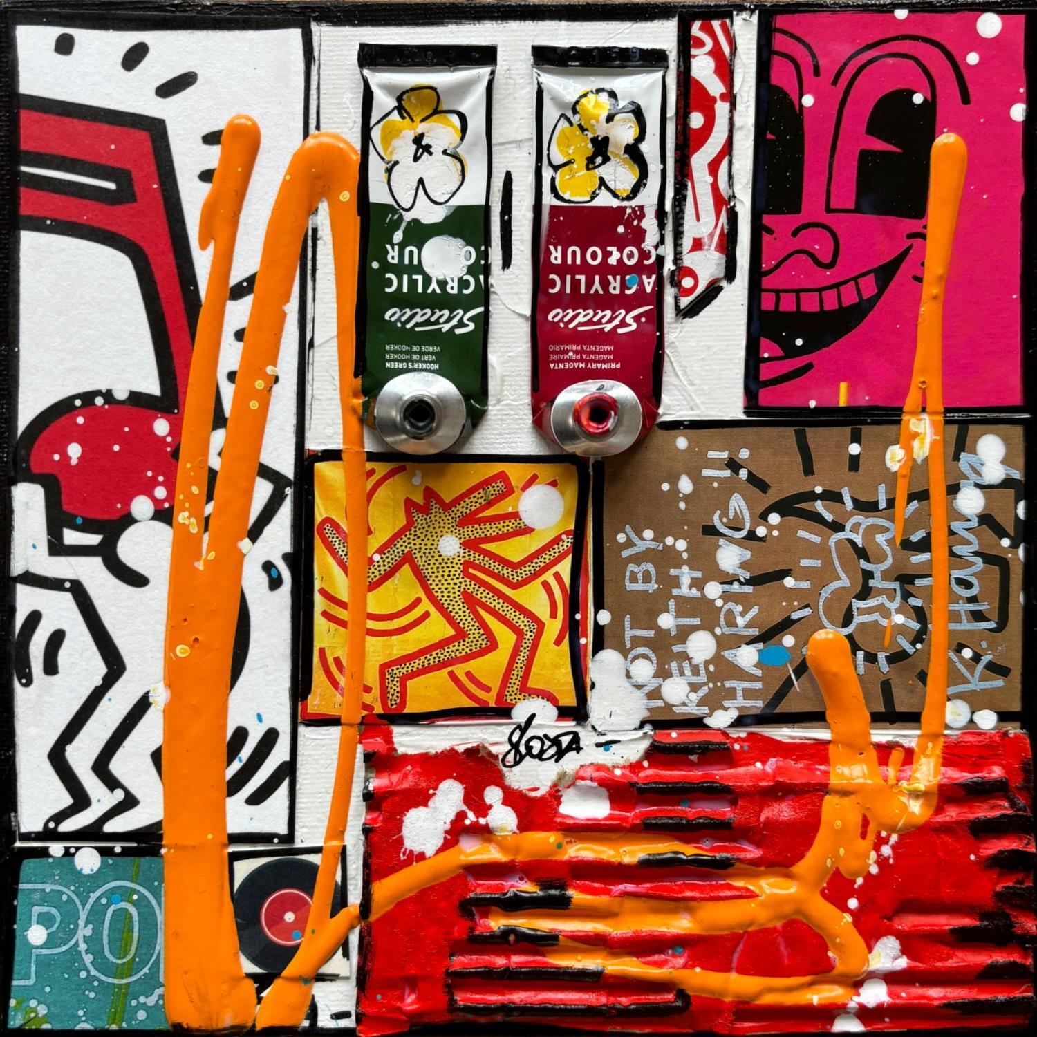 This unique and original contemporary artwork "Tribute to Keith Haring" on the subject of Pop icons has been created by the contemporary artist Costa Sophie.