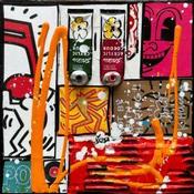 The artist used Acrylic, Gluing, Upcycling media on Canvas board to create this Pop-art, Small size painting.