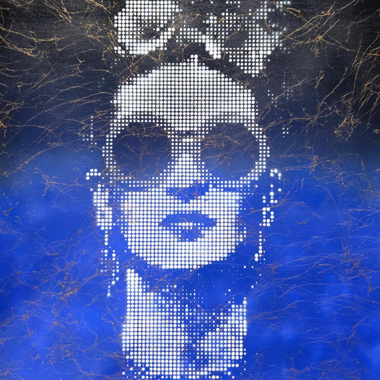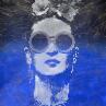 This unique and original contemporary artwork "Frida Lunettes Bleu Noir Or" on the subject of Pop icons has been created by the contemporary artist Wawapod.