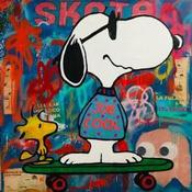 This unique and original contemporary artwork "Snoopy skate board" on the subject of Pop icons has been created by the contemporary artist Kikayou.