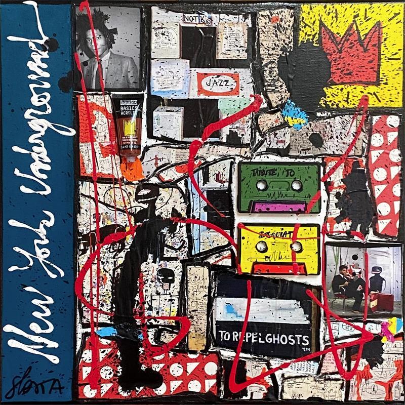 This unique and original contemporary artwork "Basquiat, NY underground" on the subject of Pop icons has been created by the contemporary artist Costa Sophie.