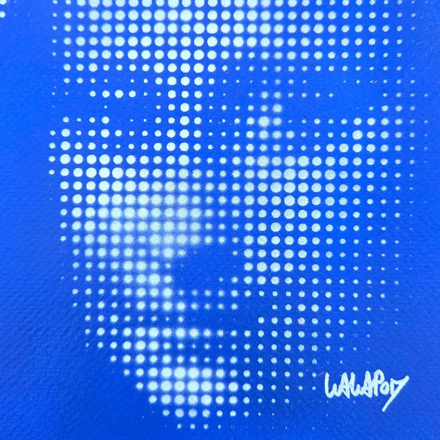 This unique and original contemporary artwork "Mini Joconde bleu" on the subject of Pop icons has been created by the contemporary artist Wawapod.