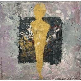 The artist used Acrylic, Gluing, Sand media on Canvas board to create this Raw art, Small size painting.