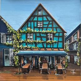 This unique and original contemporary artwork "La maison bleue du village d'Alsace" on the subjects of Architecture, Landscapes, Urban has been created by the contemporary artist Touras Sophie-Kim .