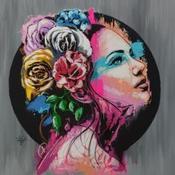 This unique and original contemporary artwork "La femme aux fleurs" on the subject of Portrait has been created by the contemporary artist Sufyr.