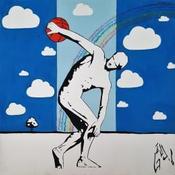 This unique and original contemporary artwork "THE BALL THROWER" has been created by the contemporary artist Alessandro Di Vicino Gaudio.