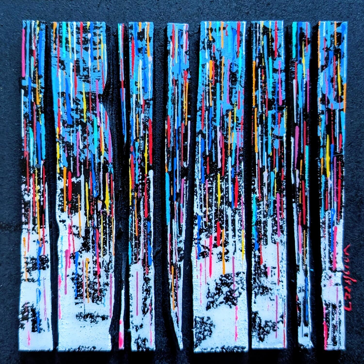 The artist used Acrylic, Wood, Resin media on Wood to create this Subject matter, Small size painting.