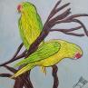 This unique and original contemporary artwork "Perruches à collier toulousaines" has been created by the contemporary artist Geiry.