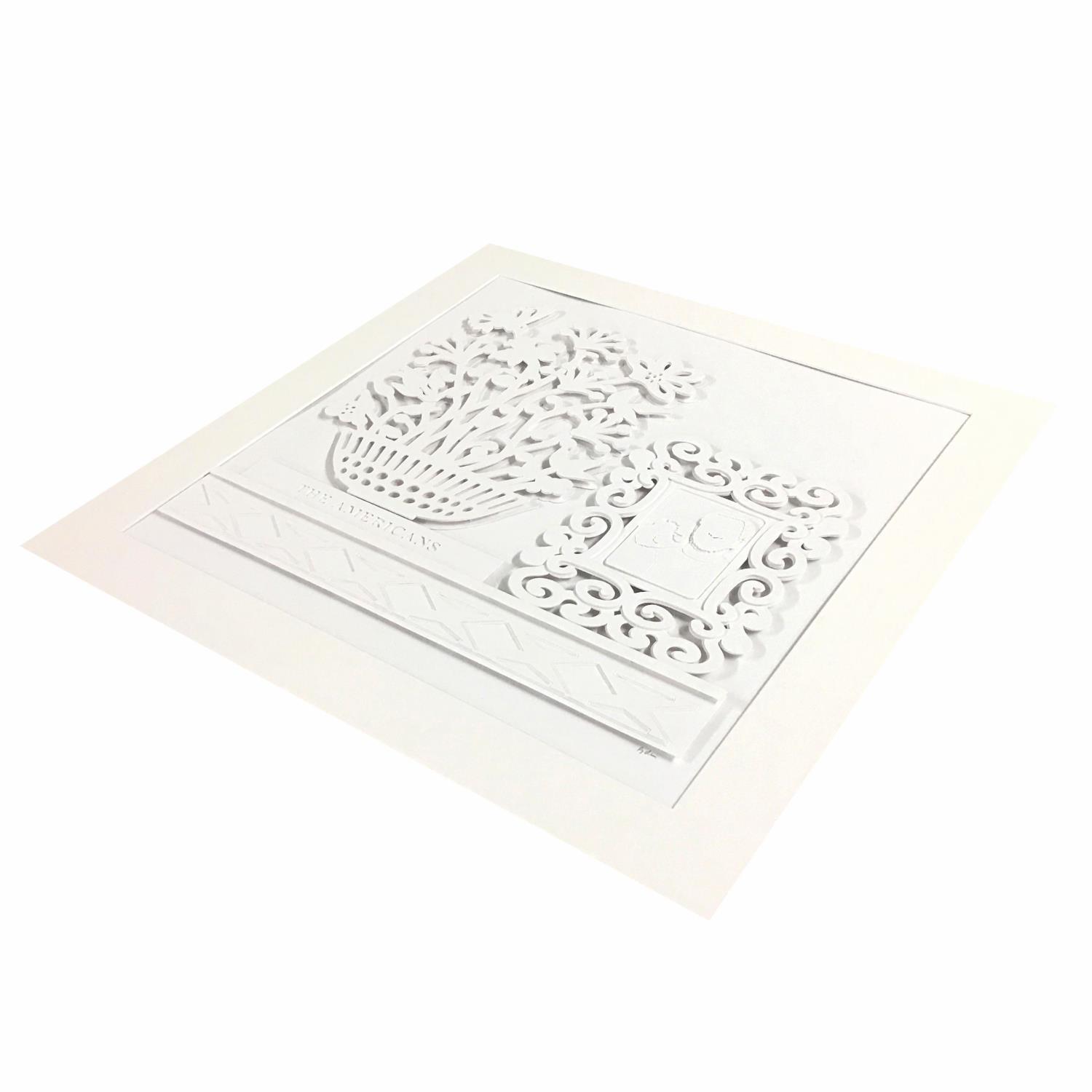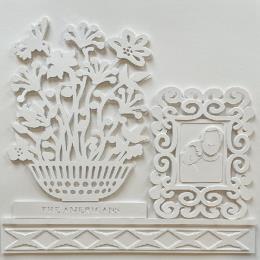 The artist used Gluing, Paper media on Paper to create this Subject matter, Small size painting.