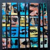 This unique and original contemporary artwork "Bc9 patchwork ocre bleu" has been created by the contemporary artist Langeron Luc.
