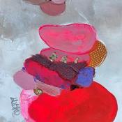 The artist used Acrylic, Gluing, Gold leaf, Paper media on Cardboard to create this Abstract, Small size painting.