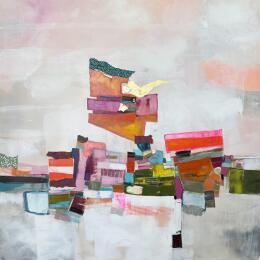 The artist used Acrylic, Cardboard, Gluing, Gold leaf, Pastel media on Canvas to create this Abstract, Large size painting.