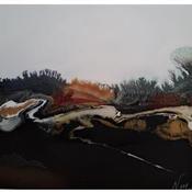 The artist used Acrylic, Ink media on Other to create this Abstract, Small size painting.